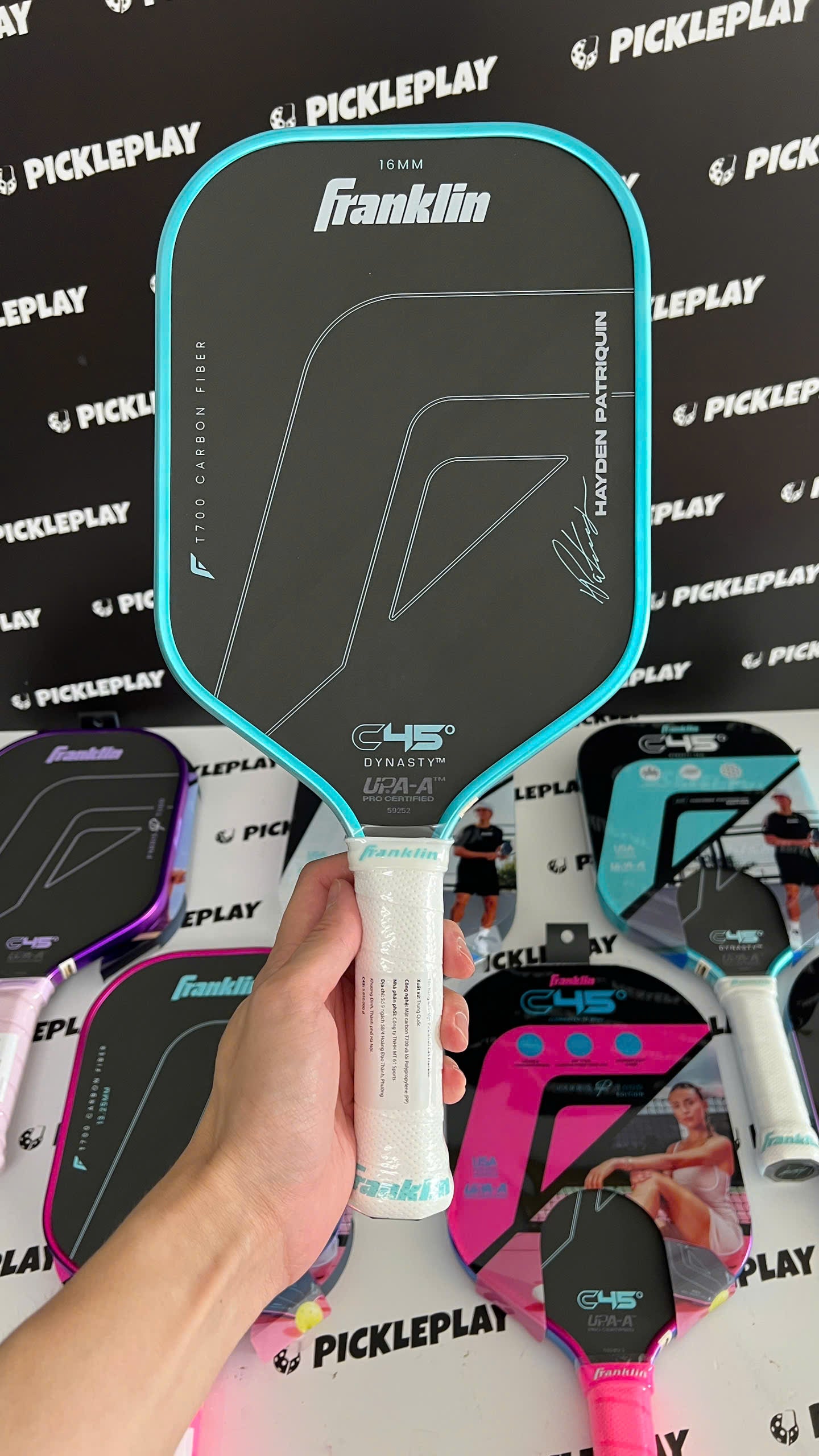Why choose Franklin C45° racket at PicklePlay.vn? With an optimal design for professional and experienced players, Franklin C45° racket is the perfect choice to improve your skills and control of the match. Come to PicklePlay.vn to own genuine, high-quality Franklin rackets and experience the products that help you improve your performance in Pickleball!