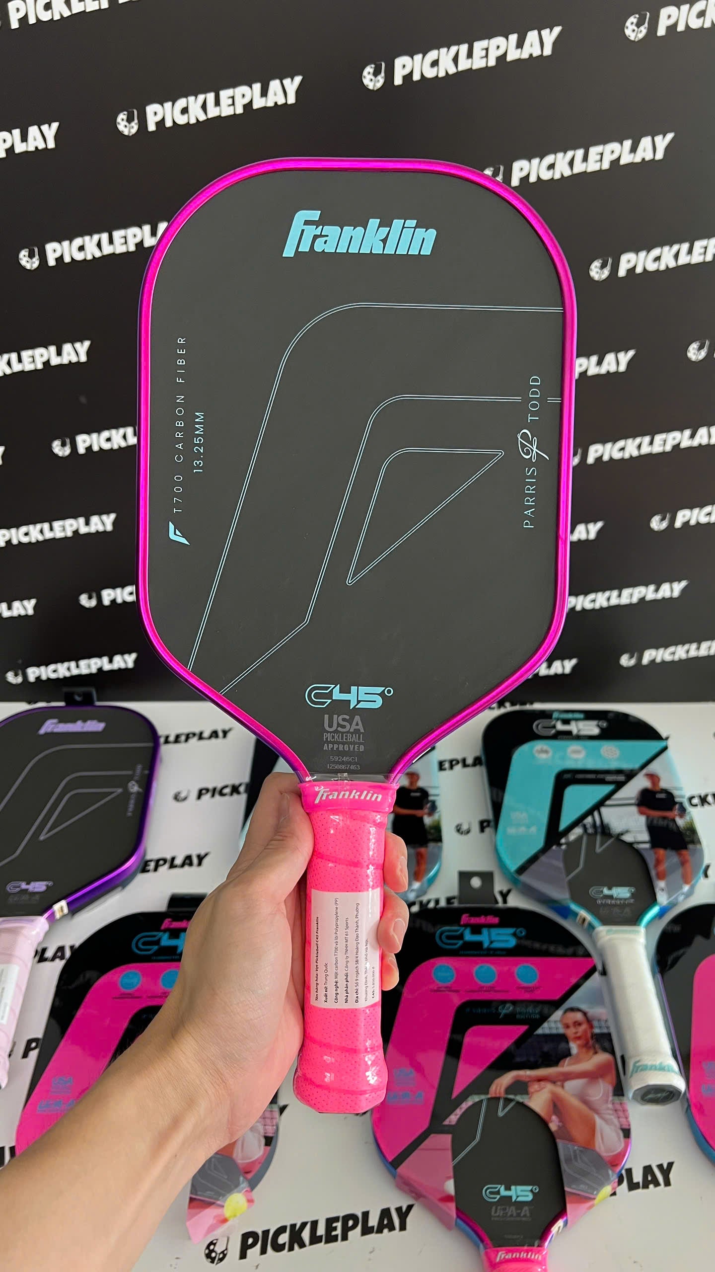 Realistic images taken from real products, without editing - helping you easily visualize the color, material and size of Franklin C45° Parris Todd Edition Pickleball Racket in real life. PicklePlay Vietnam believes that real images are the most honest way for you to feel the product quality and shop with confidence.