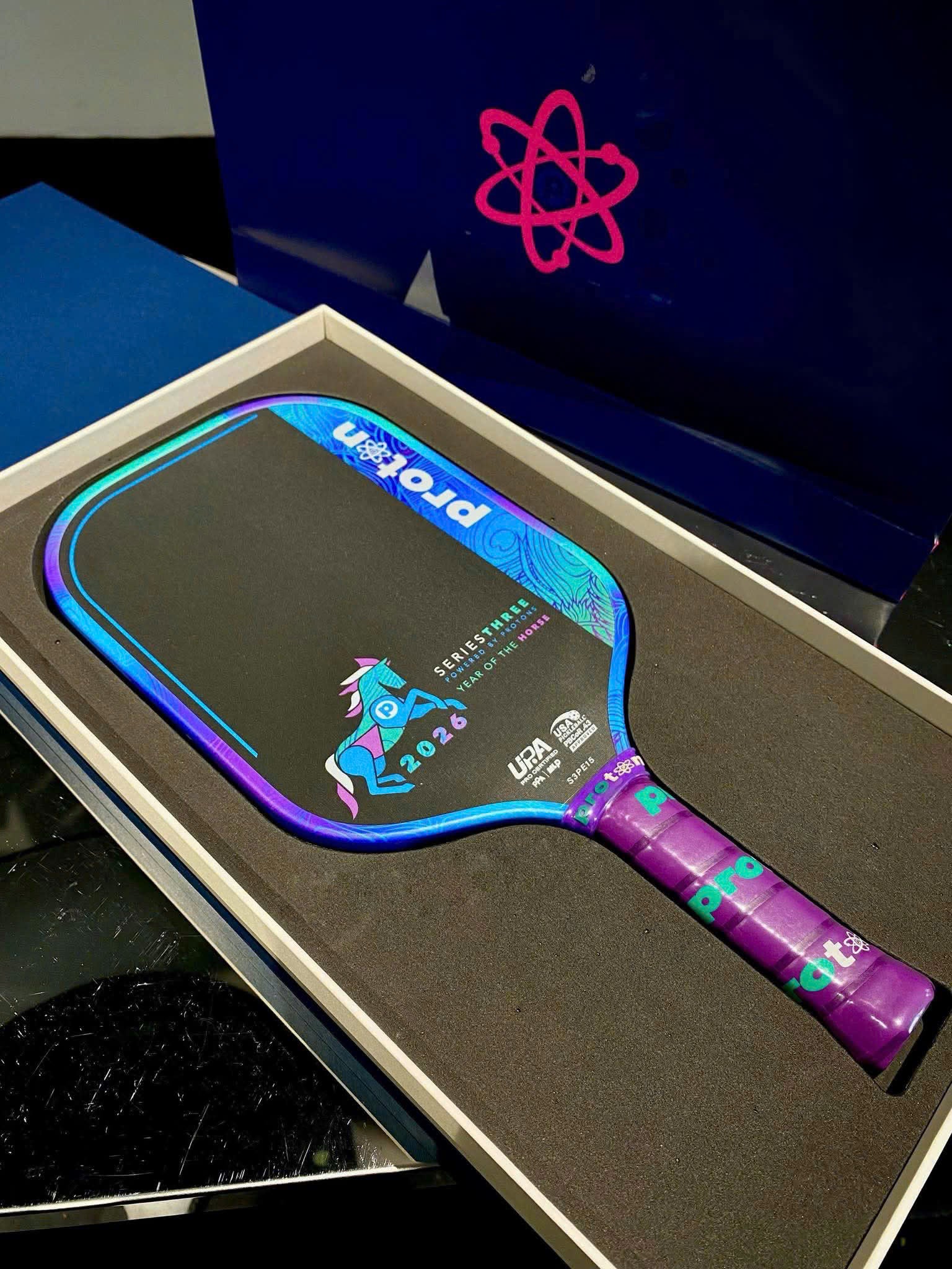 Realistic images taken from real products, without editing - helping you easily visualize the color, material and size of Vợt Pickleball Proton Series 3 - Project Peacock Year of the Horse 2026 in real life. PicklePlay Vietnam believes that real images are the most honest way for you to feel the product quality and shop with confidence.