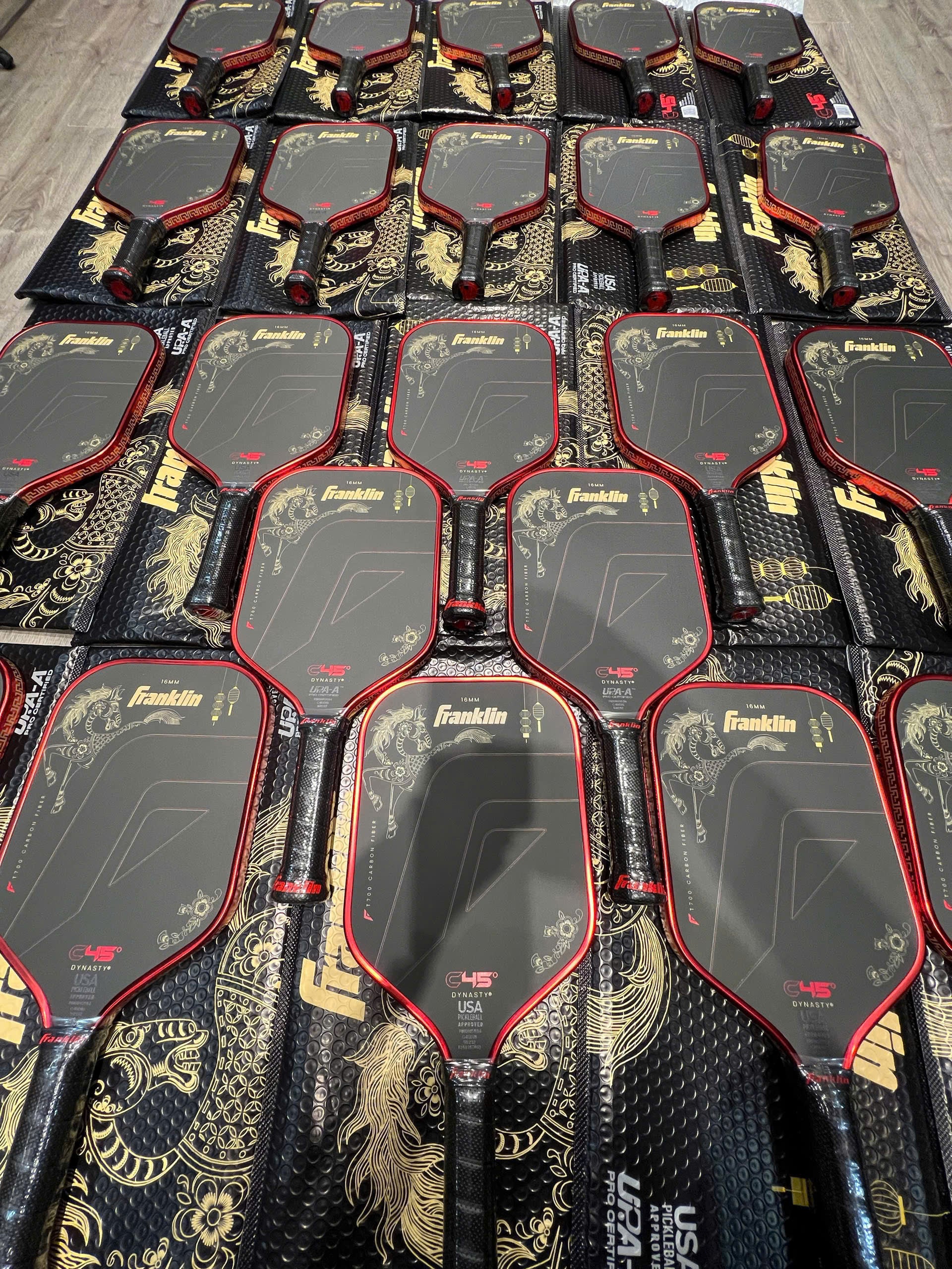 Những hình ảnh chân thực được chụp từ sản phẩm thật, không qua chỉnh sửa – giúp bạn dễ dàng hình dung màu sắc, chất liệu và kích thước của Vợt Pickleball Franklin C45° Dynasty Year of the Horse Edition ngoài đời thực. PicklePlay Việt Nam tin rằng hình ảnh thực tế là cách trung thực nhất để bạn cảm nhận chất lượng sản phẩm và tự tin mua sắm.